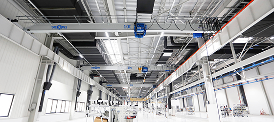 生產(chǎn)廠區(qū)(協(xié)成工廠)占地面積40000 多平方米,位于浙江嘉善國家級經(jīng)濟開發(fā)區(qū),生產(chǎn)車間完全按歐式起重機模塊化流水線生產(chǎn)布局,采用世界領先的德國起重機技術,生產(chǎn)工藝及產(chǎn)品完全符合ISO國際標準、中國國標、歐洲FEM、德國DIN、美國CMAA、英國BS、日本JIS等標準,年產(chǎn)起重機近千臺,主要生產(chǎn)雙梁橋式起重機、單梁橋式起重機、雙梁懸掛起重機、單梁懸掛起重機、門式起重機、半門式起重機、過跨起重機、多支點起重機、輕軌起重機、旋臂吊,特別是管樁起重機、潔凈起重機、造紙專用起重機、電廠起重機、全自動智能起重機、吊運熔融金屬專用起重機等產(chǎn)品深受客戶好評。